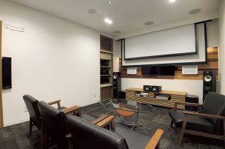 ホームオートメーションに力を入れ、多数の実績を誇る。インストールはリモコンのプログラミング、セキュリティ、オリジナル家具まで何でもお任せ。ショールーム2階に約16畳のシアタールームを設け、7.1.4chのドルビーアトモスに対応。AMXによるオートメーションも体感できる。