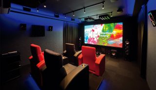 最新プロジェクターやAVアンプを用い、座席部にひな壇を設けた「専用室シアター」と超短焦点プロジェクターを中心に日常環境を模した「リビングシアター」を完備。シアター構築のハードルをできるだけ引き下げる高コスパのオリジナル商品も体感できる。 -