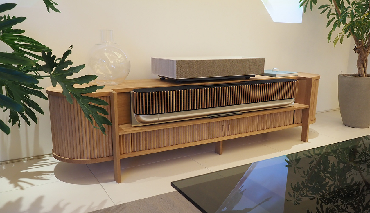 なぜならいま、ホームシアター機器の高機能化が進んでいるからです。特にスピーカーが顕著で、欧州ブランドを中心にアンプ内蔵モデルが多数登場。音楽配信サービスを再生できるだけでなく、HDMI端子を搭載するのでテレビとの親和性も高いです。一方、テレビも単体で動画配信サービスへの対応が当たり前になっています。そうした高機能なテレビとスピーカーを組み合わせる“ミニマル2chシアター”に最適なテレビボードについて、スペックとデザインの両面から考えてみました。