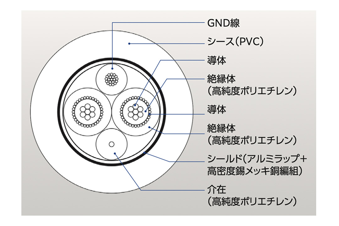 - 1芯あたりの芯線構造は、上位モデルあである「7NAC-Granster 5000α」で採用された、異種独立2層2芯構造を踏襲しています。1芯が2層構造であるため、4芯構造とほぼ同等の構造となっていますが、2層2芯構造にすることで、より高い解像感、S/N感を実現しているといいます。また、グラウンド線1芯を採用し、シールド線を機器側との片側接地にすることで安定した信号伝送を促しています。