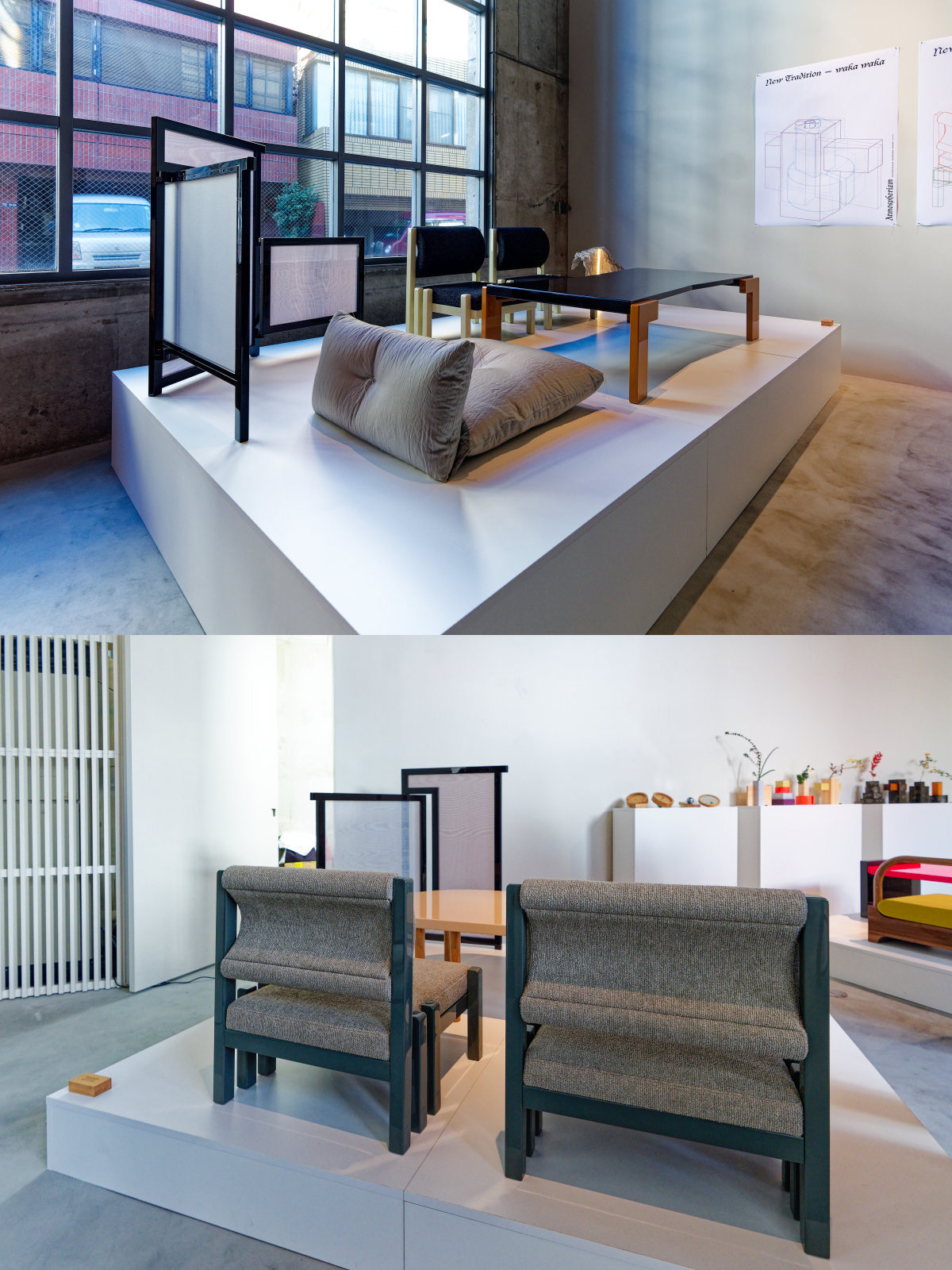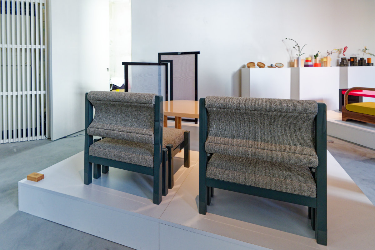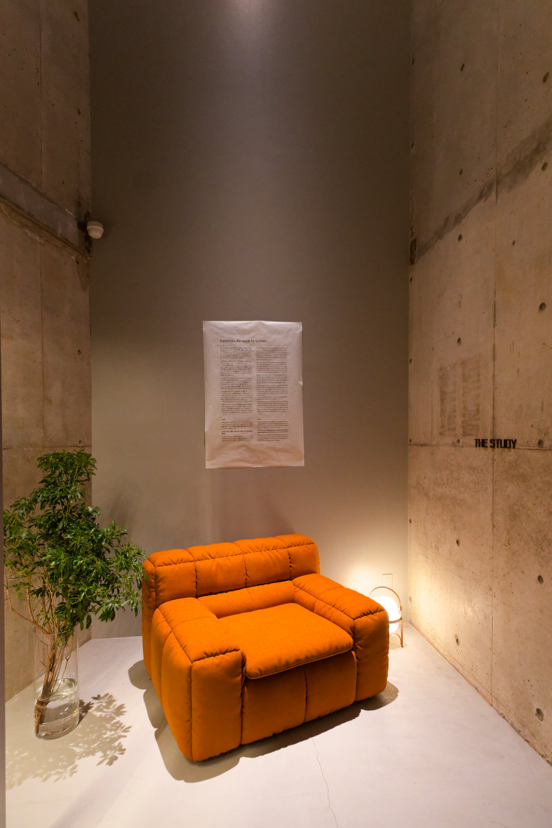 会期中は「Karimoku Re:issue by Lichen」が開催中。ニューヨークを拠点に活動するデザインスタジオLichenが、かつてラウンジで高級応接セットとして使われていたソファに目を付け、アーカイブ化しています。