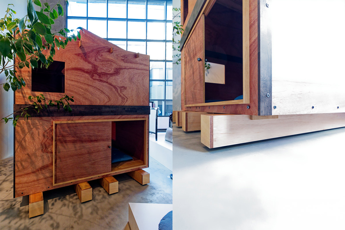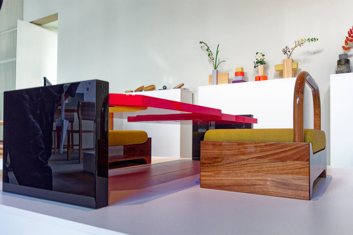 リサーチャーとして招聘されたロサンゼルスを拠点に活躍するWAKAWAKAの奥田慎一郎は、カリモク家具の工場を訪れたとき、和家具や日本の家庭用家具に用いられてきたシルエットや意匠に心奪われるとともに、高度な塗装技術と張り込みの技術を駆使したアイテムを生み出したいと考えました。