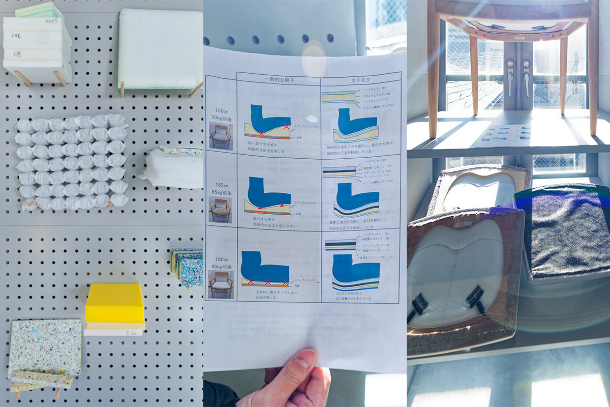 カラー見本や加工見本、製品化前のプロトタイプまで、本社工場で見学しなければ体験できないようなものまで目の当たりにでき、カリモク家具の技術の一端を五感で学ぶことができます。ぜひこの3フロアを巡ってみてください!