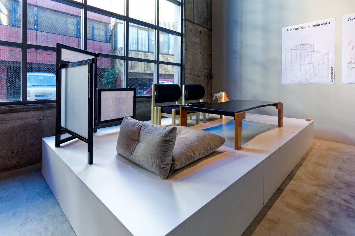 今回の展示のテーマは、NEW TRADITION。伝統的な木のものづくりを探究してきたカリモク家具にとって、そもそも「伝統とは何か?」という根本的な課題をアーティストとともに見直すことで、未来への道しるべとしようという意欲が感じられます。