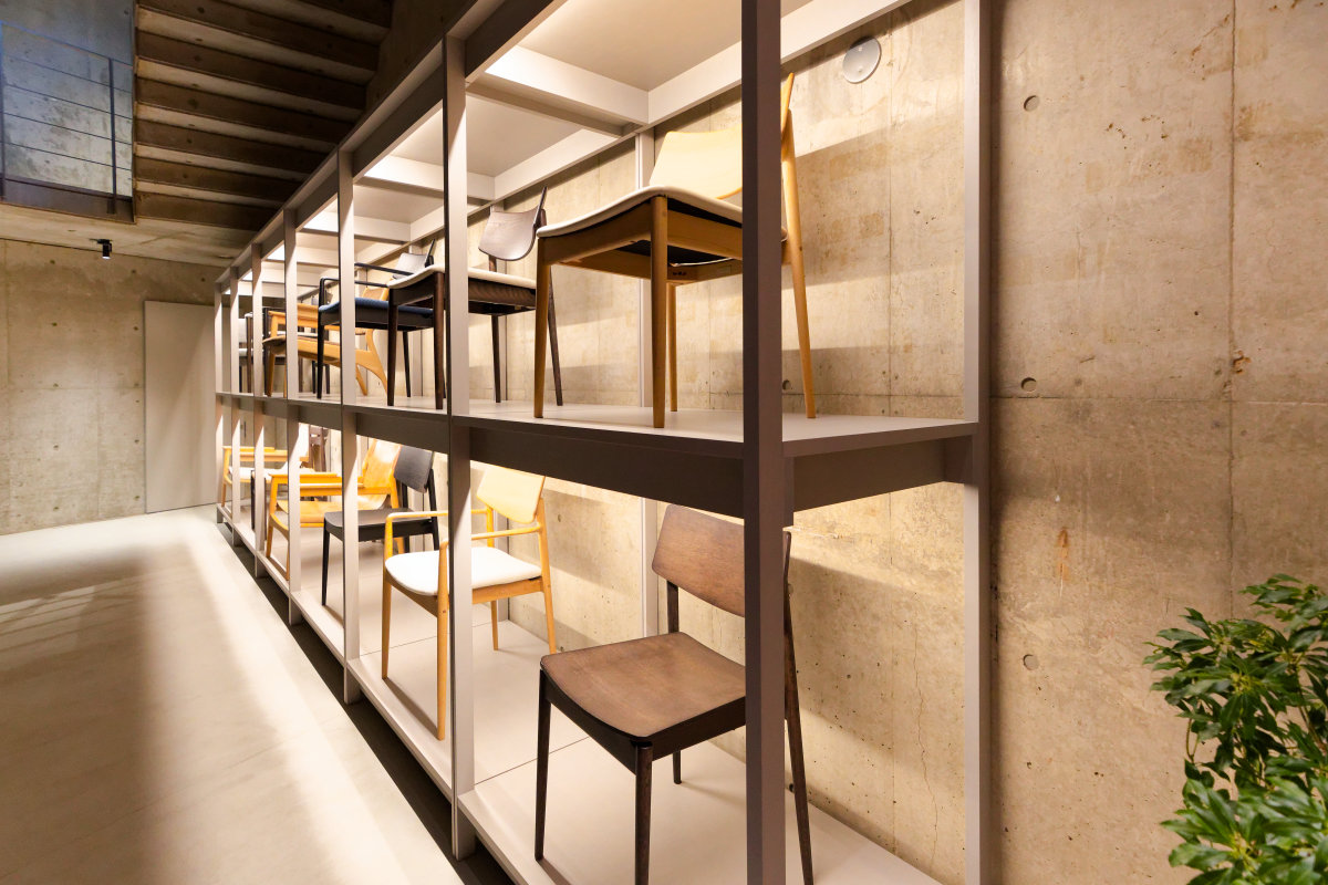 - 2階「THE MATERIALS LAB」はカリモク家具がこれまで製作してきた家具のアーカイブや、木工、塗装、多種多様な木材などのサンプルの展示から、ブランド伝統の技術を図書館のように閲覧することができます
