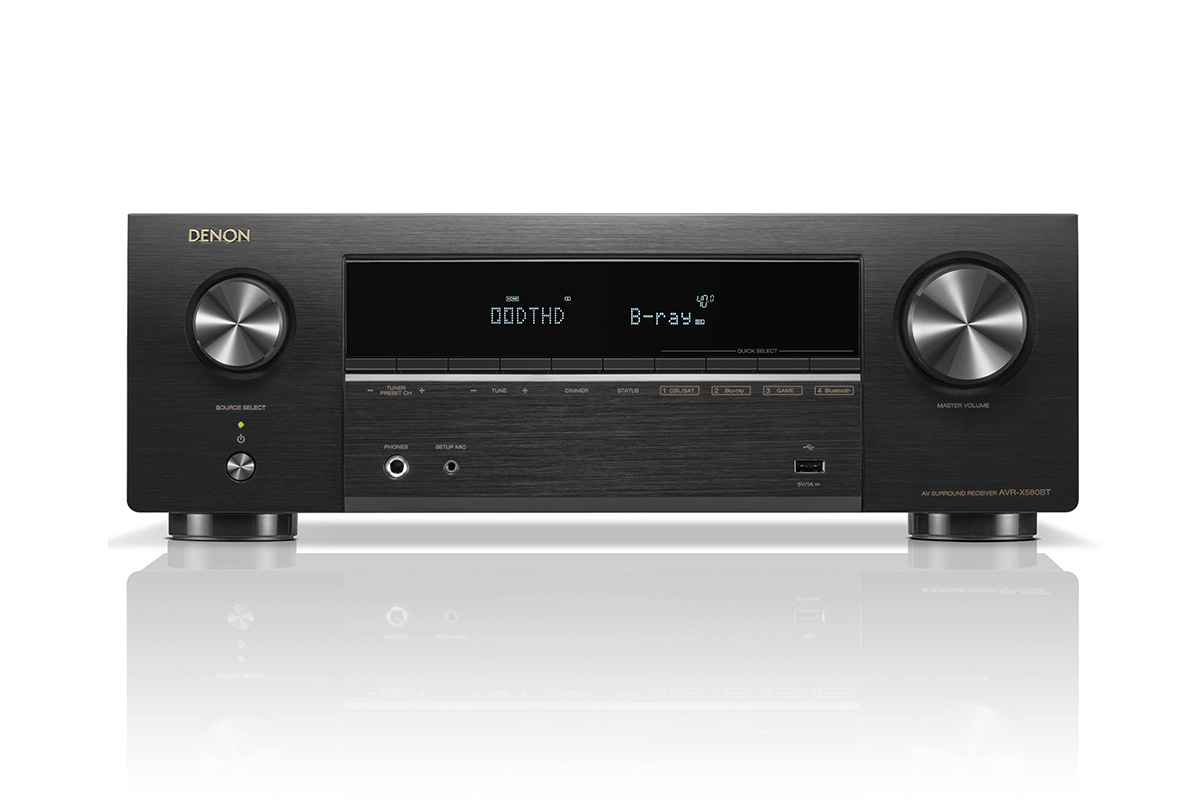 - アンプは5.1ch対応モデルであれば比較的手軽に入手できるはず。そのうちの3chを利用できます。画像は5.2ch対応のDENON「AVR-X580BT」