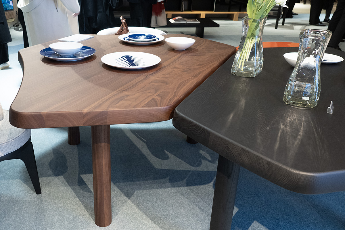 - 「TABLE MONTPARNASSE」は1940年代から1950年代にかけて7台のみ製造されたテーブルで、当時はカスタム品のため6人以上に対応するほどの大きなサイズもあったそう。復刻にあたり現代の生活に合わせて使いやすいサイズ(1830W×740H×1250Dmm)へとブラッシュアップされ、同じくペリアンがデザインしたダイニングテーブル「VENTAGLIO」より少し小さい程度となりました