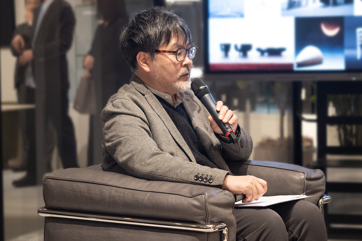 3月には、ペルネット・ぺリアン=バルザック氏と、彼女の夫でありシャルロット・ぺリアンの研究家であるジャック・バルザック氏がフランスより来日。多くのブランドファンも駆けつけトークイベントが開催されました。香川大学創造工学部 教授/プロダクトデザイナーの井藤隆志氏がモデレーターを務め、今回のトークテーマ「The Design of Stillness」について、谷崎潤一郎著『陰翳礼讃(いんえいらいさん)』の一節を取り上げてペリアン作品の魅力を深く掘り下げ、日本の美意識との共通点を語らう場となりました。