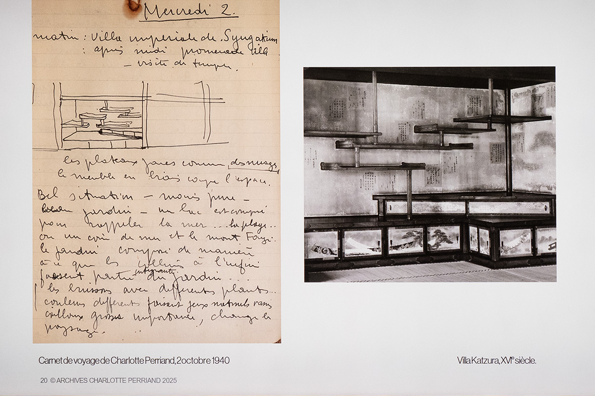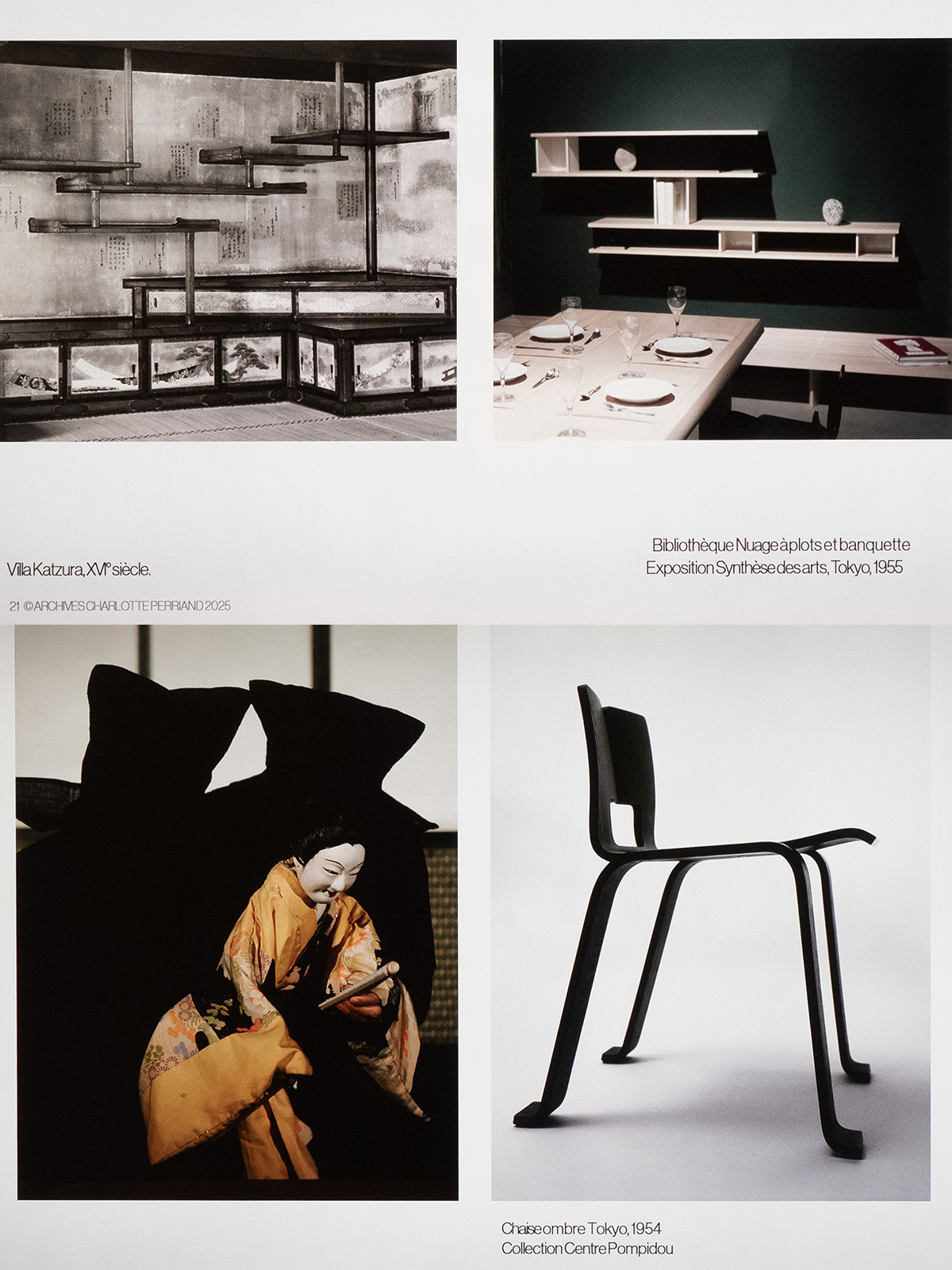 「彼女のデザイン特徴の一つは、素材へのこだわりにもあります。金属、ガラス、木材、籐など、多様な素材を用いてそれぞれの特性を活かしながらデザインしました。あるときは、いわゆる廃材、木切れを用いてパーテーションをつくったこともあります。色や素材を使って家具にコントラストを生み出すだけでなく、その家具が置かれる空間全体との調和も意識していました。山間の庵や都市のアパートメントなど、異なる環境に応じてデザインを生み出し、それぞれの場所に最適な形や素材を選んでいます。シャルロットのデザインは単なる造形ではなくそこに暮らす人々の体験を豊かにするものでした。そのため、彼女の作品には機能性と詩的な美しさが共存し、時代を超えて愛され続けているのです」)(ジャック・バルザック氏)