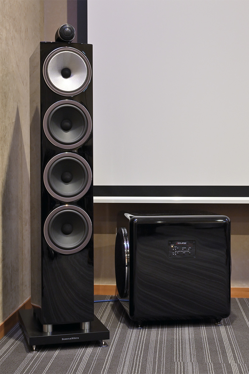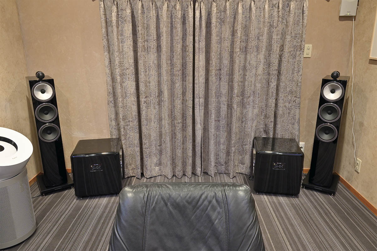 鈴木氏はもともとあった環境を生かしつつ、最新のシステムへのアップデートを施しました。お部屋の防音性能を損ねないようハイトスピーカ―にはイクリプスの「TD508MK3」を天吊り設置。フロントとサラウンドは音の迫力を重視してBowers & Wilkinsのフロアスタンディング型で統一しました。