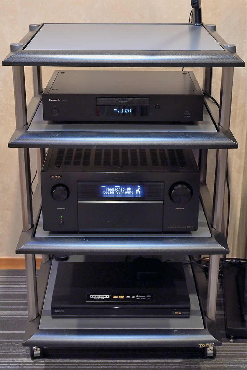 ●プロジェクター:ビクター DLA-V80R ●スクリーン:オーエス EP-120HM-MRW1-WF302 ●テレビ:レグザ 77X9900M ●Ultra HD ブルーレイレコーダー:パナソニック DMR-ZR1 ●AV アンプ:デノン AVC-A1H ●フロントスピーカー:Bowers & Wilkins 702 S3 ●センタースピーカー:Bowers & Wilkins HTM71S3 ●サラウンドスピーカー:Bowers & Wilkins 702 S3 ●サラウンドバックスピーカー:Bowers & Wilkins 703 S3 ●フロントハイトピーカー:イクリプス TD508MK3 ●トップミドルスピーカー:イクリプス TD508MK3 ●トップリアスピーカー:イクリプス TD508MK3 ●サブウーファー:イクリプス TD520SW 4台