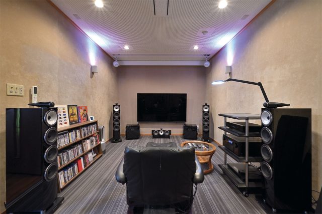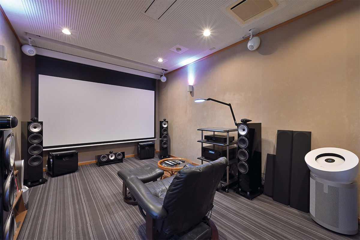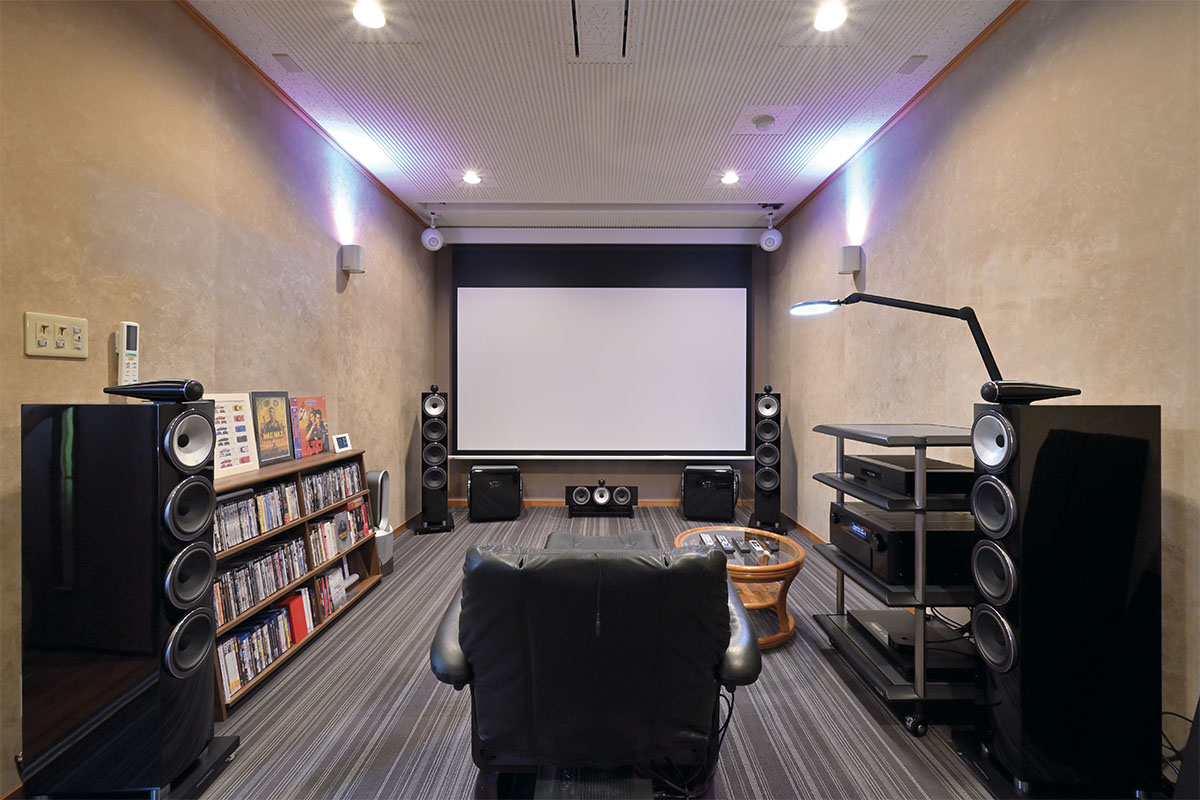●住宅形態:戸建/リフォーム ●ホームシアターの広さ:10畳 ●画面サイズ:120インチ ●サラウンド:7.4.6ch ●インストール内容:機器設置、システムプランニングほか