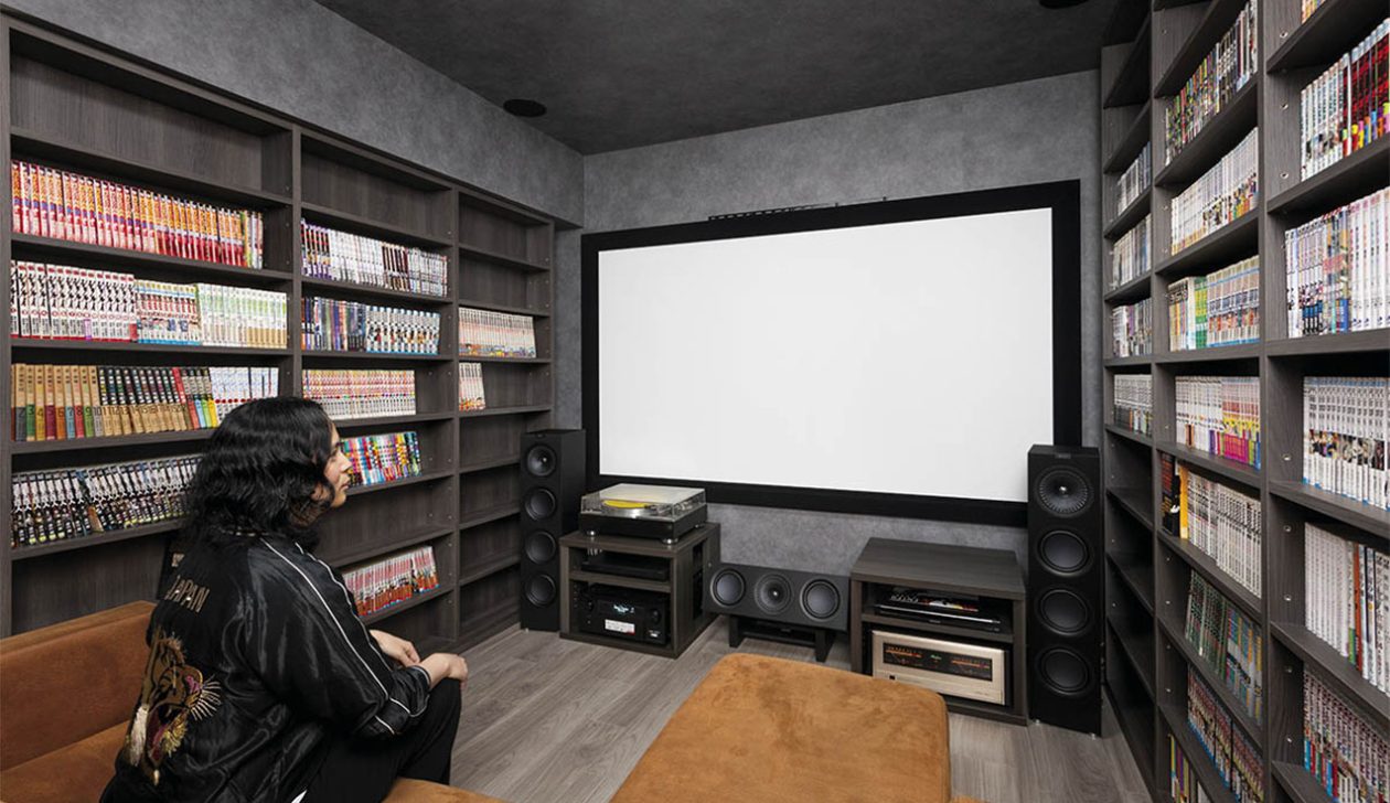 マンションの個室をリフォームして完成したホームシアター。ホームシアター工房名古屋の加藤将明氏は、コンパクトな空間ながら臨場感溢れる100インチ&5.1.6ch環境を構築しました。