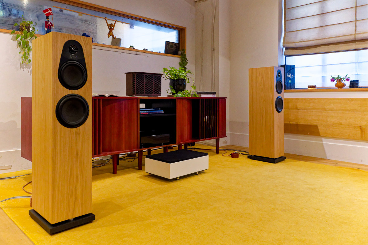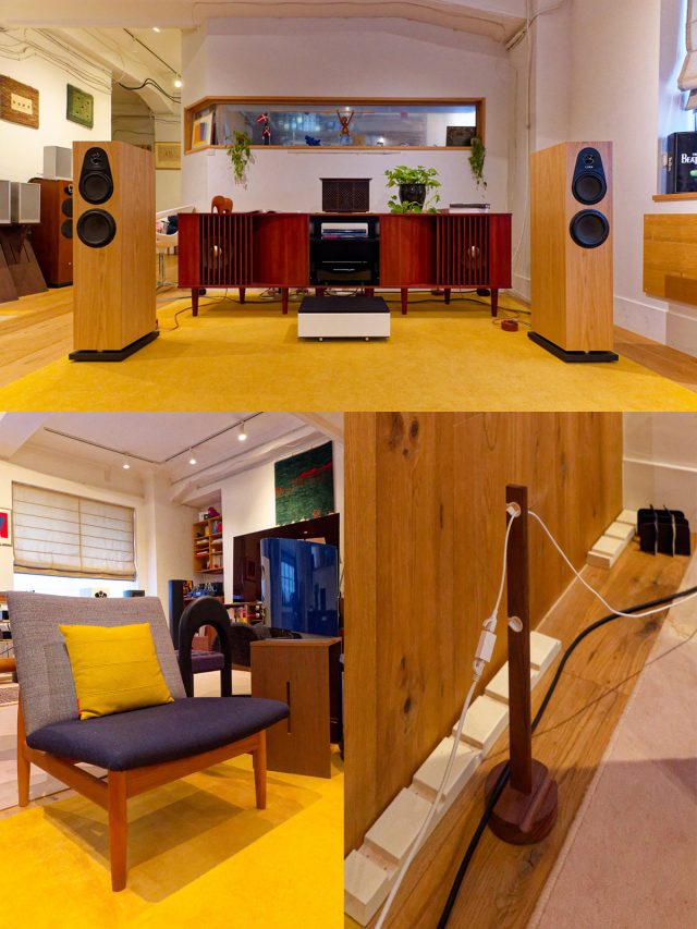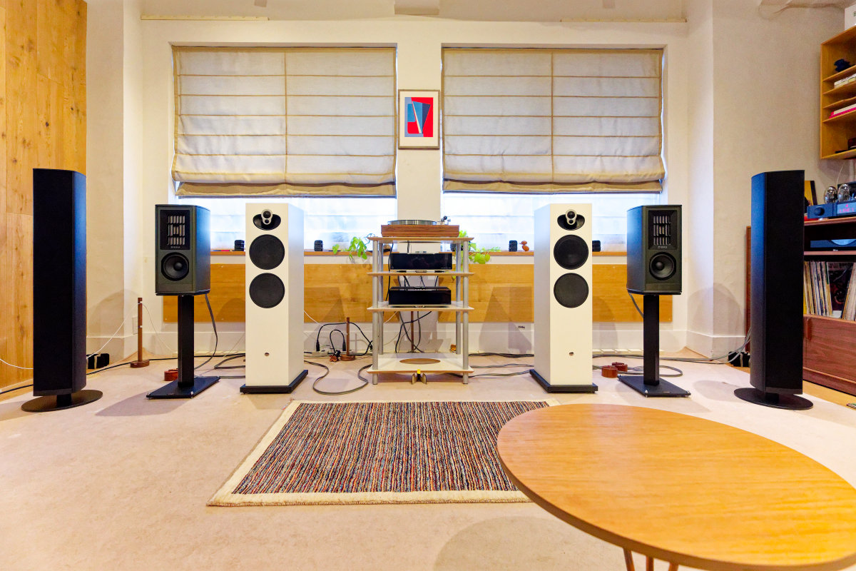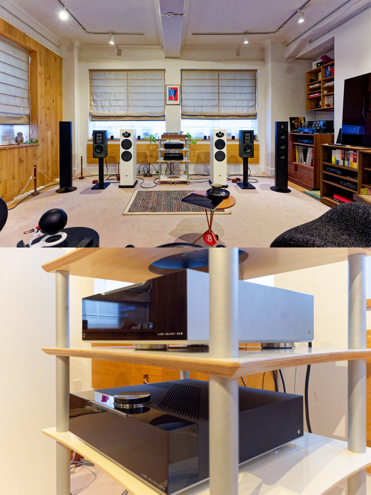 - 試聴環境はこんな感じ。スピーカーは外側からPIEGA「Premium 701 Gen2」「Coax 411」、LINN「MAJIK 140 SE」