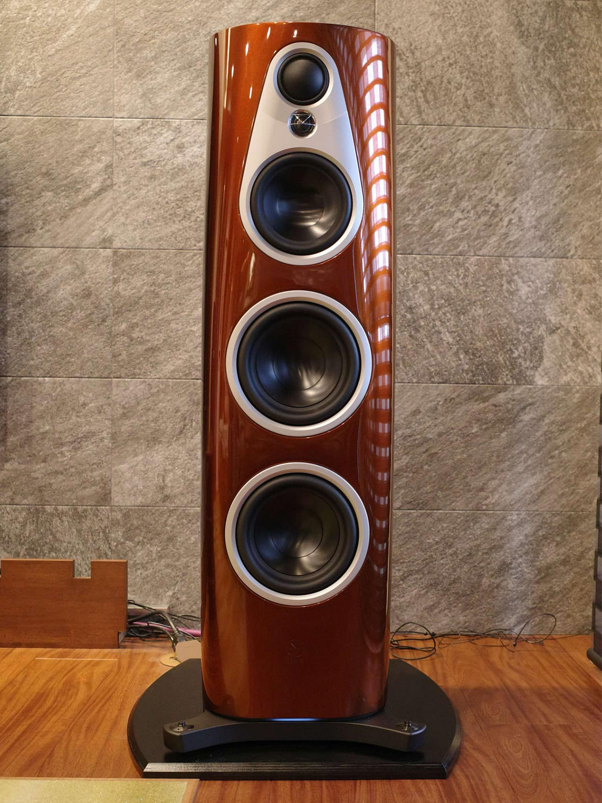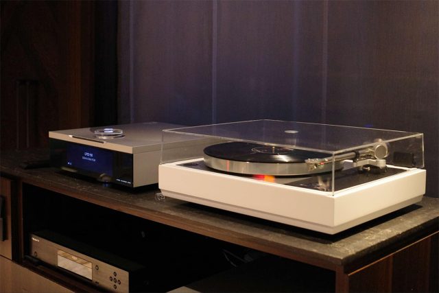 大きなリボントゥイーターで清透なコーラスを淀みなく響かせるPIEGAのブックシェルフ型スピーカー「Coax 411」が、TIGLONの別注スタンドに載せられ、LINNのネットワークプレーヤー&プリアンプ「SELEKT DSM -CKA」で鳴っていたのでした。このスピーカーは、発売されたばかりにもかかわらず初動好調なLINNのブックシェルフ型スピーカー「119」とともに、人気の双璧をなしているのだそう。