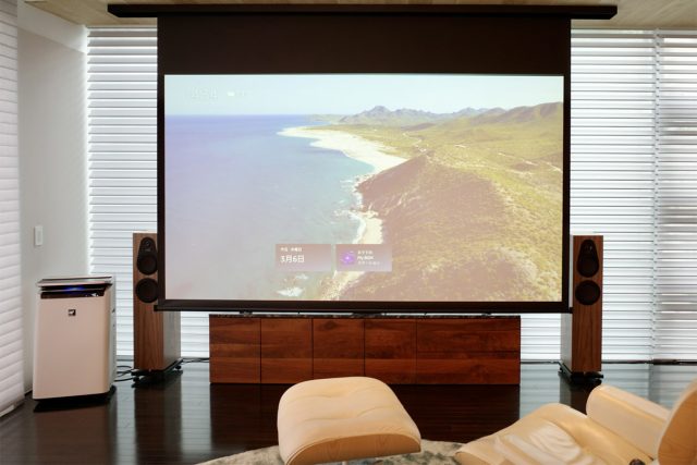 - プロジェクターはVICTORのネイティブ4Kプロジェクター「DLA-Z5」、スクリーンは120インチです