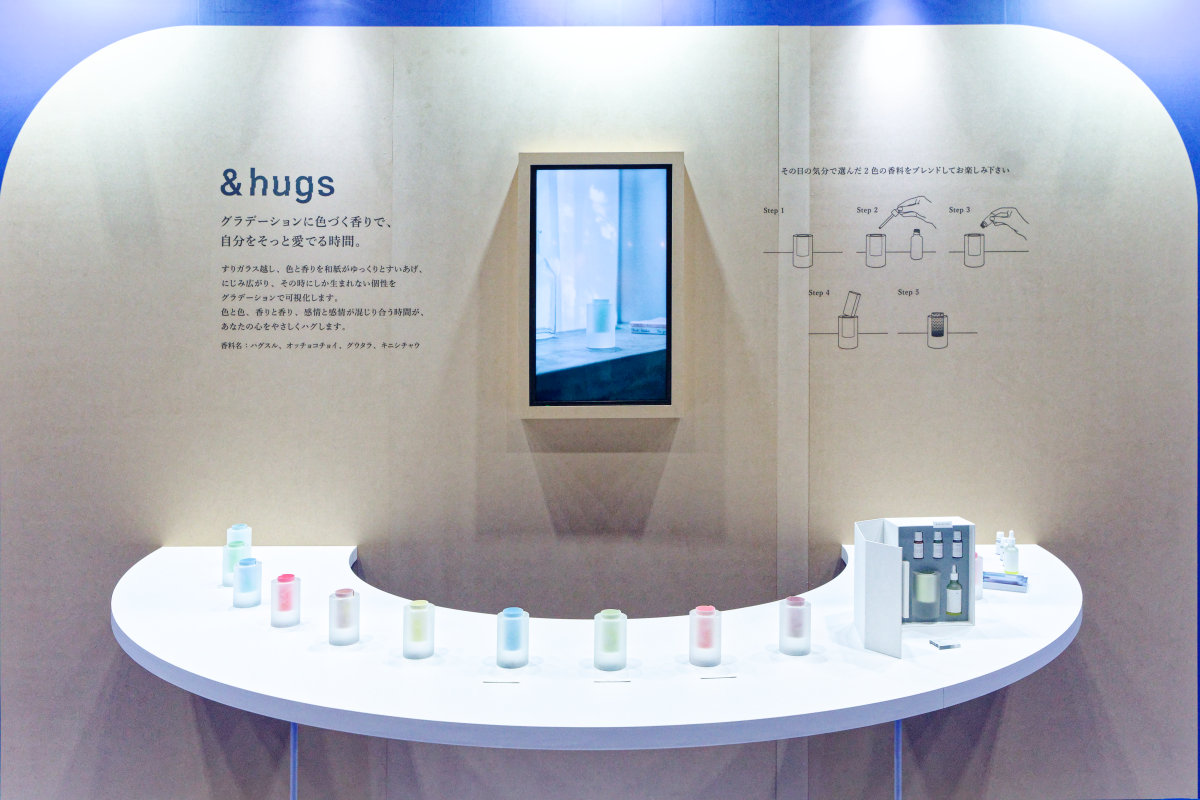その日の気分で色と香りを選ぶこのホームフレグランス「&hugs」は、ネガティブな感情を受け止めてハグし、肯定してエールを送ってくれる “癒やし” のアロマ。わたしたちホームシアターファンなら思いきり泣きたいときや元気を出したいときに観る映画・聴く音楽があるように、本来視覚で捉えることのできない香りや感情を色で可視化するというコンセプトは、クリエイティブディレクターでデザイナーのShizuka Tatsuno Studio代表・辰野しずかさんによるもの。