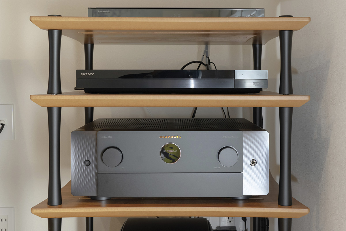 ●プロジェクター:OPTOMA UHD-55 ●スクリーン:オーエス EP-120HM-MRW1-WF302 ●Ultra HD ブルーレイレコーダー:ソニー BDZ-FBT4100 ●AV アンプ:マランツ CINEMA50 ●フロントスピーカー:HERBETH HL-Compact7ES-3 XD ●スピーカースタンド:HERBETH HSS-7C ●リアスピーカー:MONITOR AUDIO C265 ●サブウーファー:KEF KC62 ●ラック:QUADRASPIRE Q4D VENT