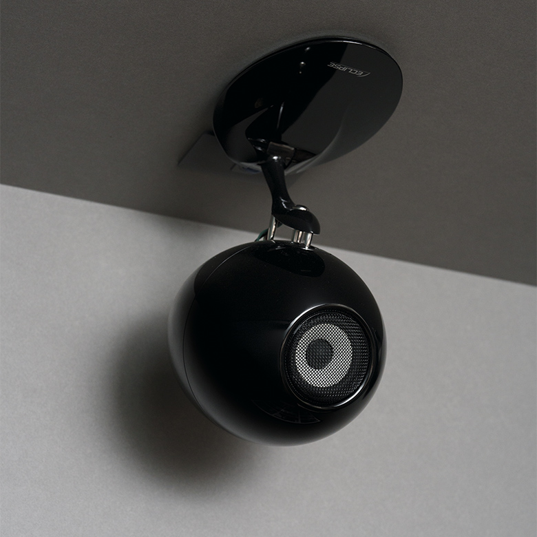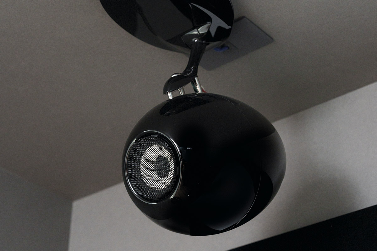 スピーカーはもちろんイクリプスで統一。サラウンドおよびサラウンドバックスピーカーは天吊り設置で視聴スペースをゆったり確保しつつ、音のつながりをよくするためリア側と同じ機種をフロントハイトスピーカーとして導入。すべてのスピーカーが視聴位置からベストな角度になるよう調整し、部屋のすっきりとした動線と、音の没入感を両立しました。センタースピーカーはオーディオボードを設置して安定させています。