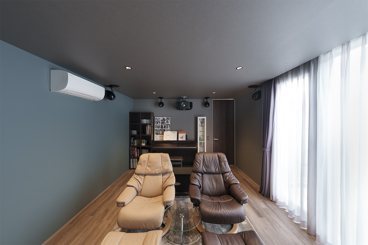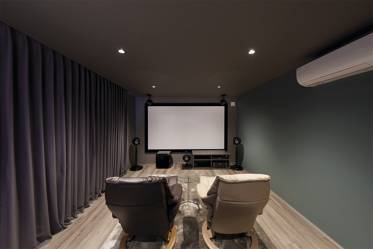 平日の早朝に映画を1本観るのがルーティン化したというオーナー。最近は7.1.2ch環境をフルに活かして、ドルビーアトモスによる音楽配信も楽しんでいます。ひたすら映画と音楽に没頭していたという学生時代を彷彿とさせる熱中ぶりです。自宅の映画館は、いつでもその期待に応えることでしょう。