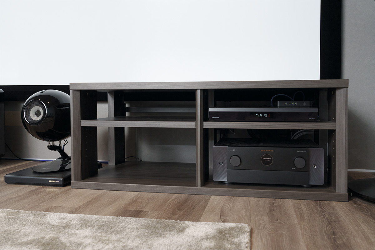 ●プロジェクター:ビクター DLA-V70R ●スクリーン:GRANDVIEW GPA-120HDW●AV アンプ:マランツ CINEMA 50 ●Ultra HD ブルーレイレコーダー:パナソニック DMR-4W101 ●フロントスピーカー:イクリプス TD510ZMK2 ●センタースピーカー :イクリプス TD510MK2 ●サラウンドスピーカー:イクリプス TD508MK3 ●サラウンドバックスピーカー:イクリプス TD508MK3 ●フロントハイトスピーカー:イクリプス TD508MK3 ●サブウーファー:イクリプス TD520SW ●オーディオボード:クリプトン AB-500 ●ラック:ハミレックス G3623